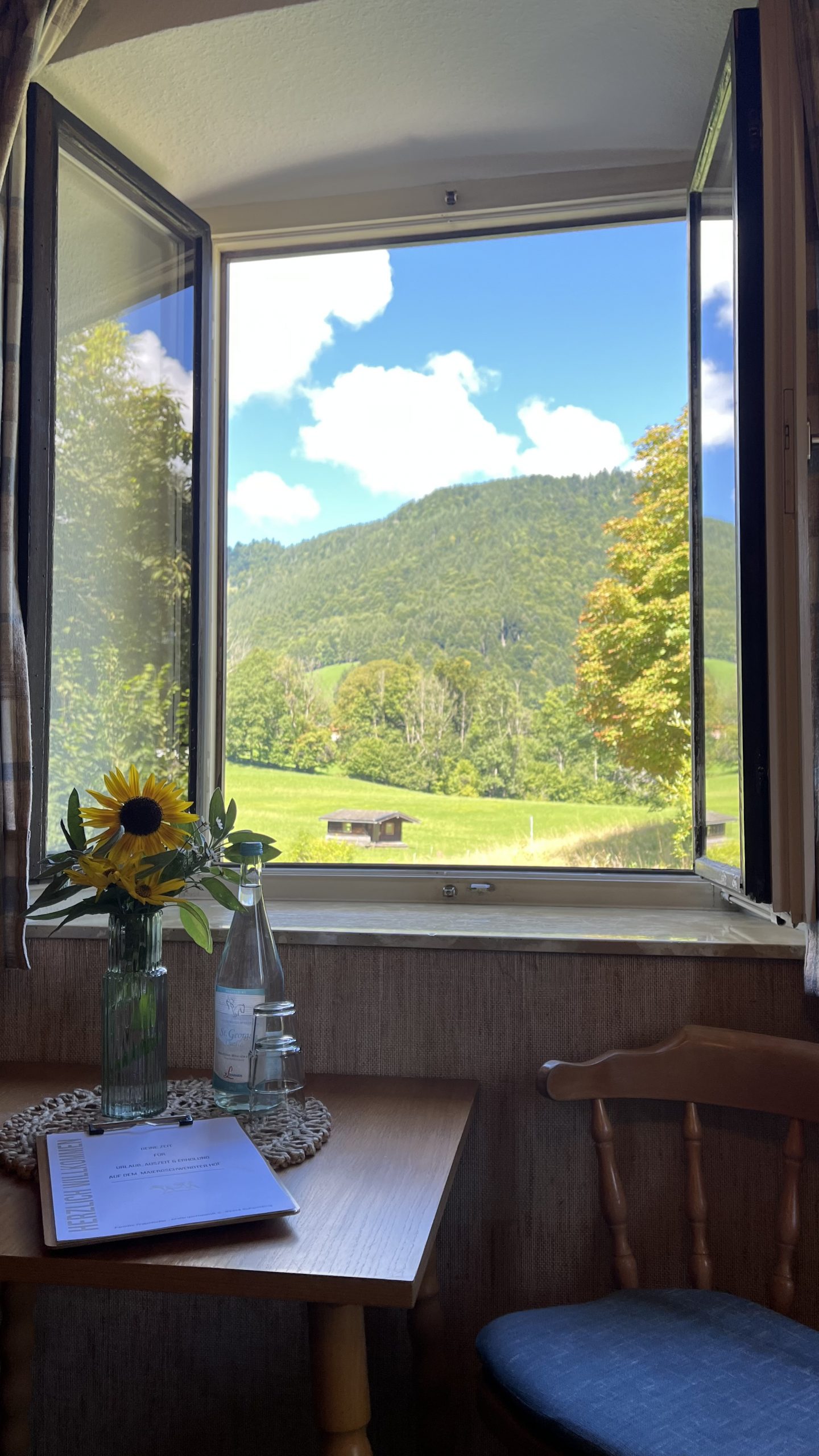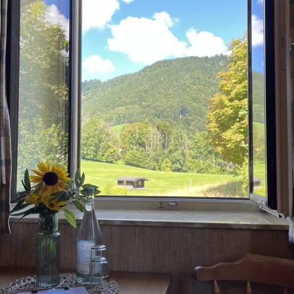 Im Erdgeschoss steht Ihnen eine kleine Teeküche mit Kühlschrank und kalten Getränken zur Verfügung. Gerne können Sie verschiedenste Sitzmöglichkeiten im Garten mit Bergpanorama nutzen.